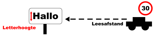 Maximum leesbare afstand vanuit het voertuig